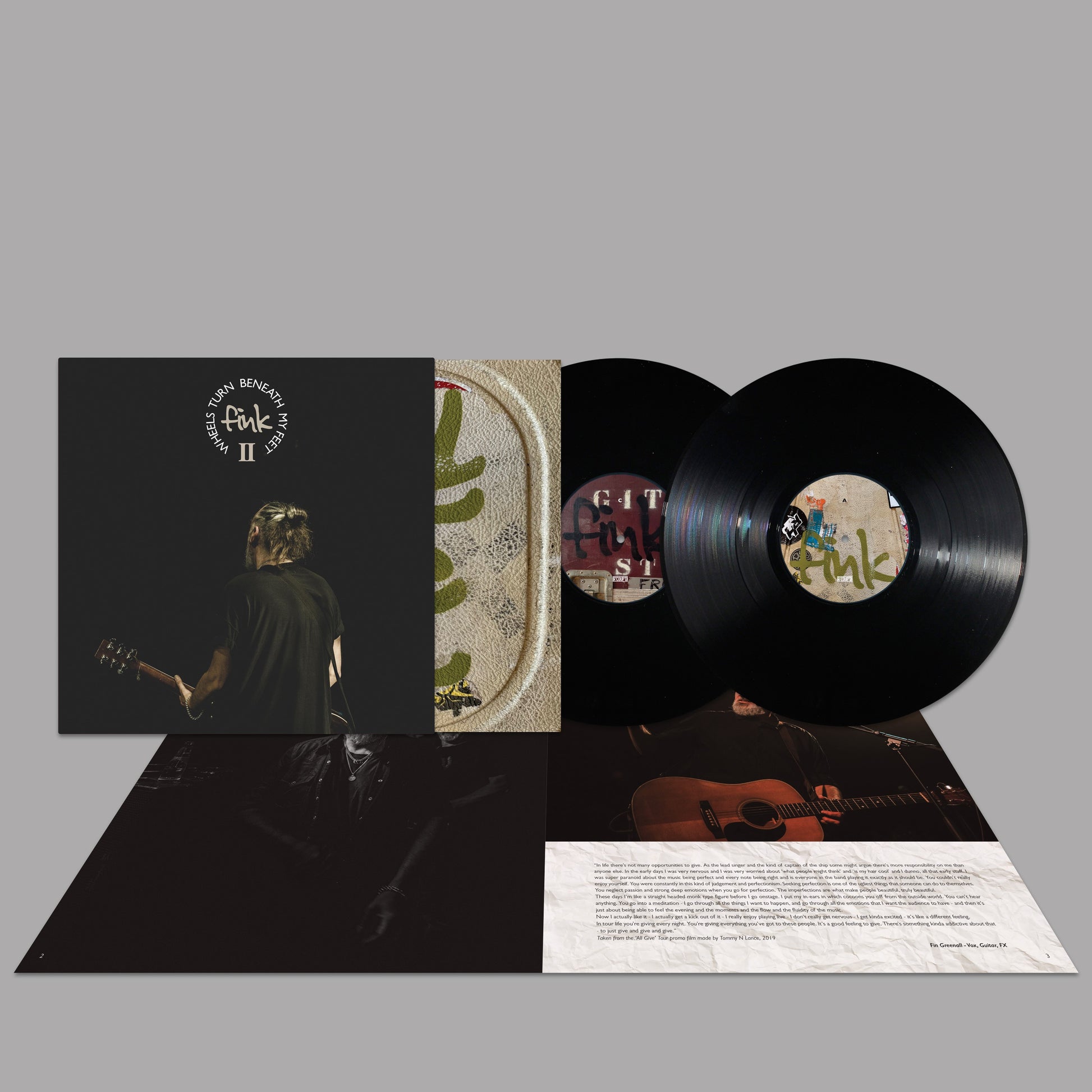 Double vinyl gatefold of Fink’s Wheels Turn Beneath My Feet II, featuring live recordings from 2014- 2019.